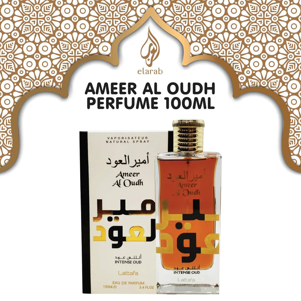 Ameer Al Oudh Perfume: A Regal Blend of Oud, Warmth, and Timeless Sophistication" is a fragrance that embodies the essence of royalty, crafted for those who seek to leave a lasting impression with their presence. This luxurious scent begins with a rich, smoky opening that combines the deep allure of oud with hints of exotic spices, immediately captivating the senses with its bold and commanding character. As the fragrance unfolds, a heart of warm amber and velvety woods emerges, perfectly balanced with subtle floral undertones that add depth and refinement to its composition. The base notes linger with an irresistible blend of sweet vanilla, earthy musk, and the opulence of oud, creating a harmonious fusion that is both long-lasting and deeply satisfying. Encased in a bottle that reflects its majestic appeal, Ameer Al Oudh Perfume is more than just a fragrance—it is a tribute to timeless elegance and the enduring beauty of Arabian perfumery. Ideal for special occasions or as a signature scent, it captures the perfect balance of strength, warmth, and sophistication, making it a truly unforgettable addition to any collection